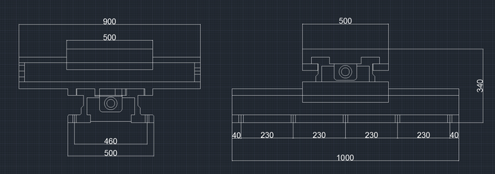 此規格SZYG500滑臺,移動工作臺規格為500*500mm,上行程400mm,下行程500mm,使用角接觸軸承和滾珠絲桿組裝。
